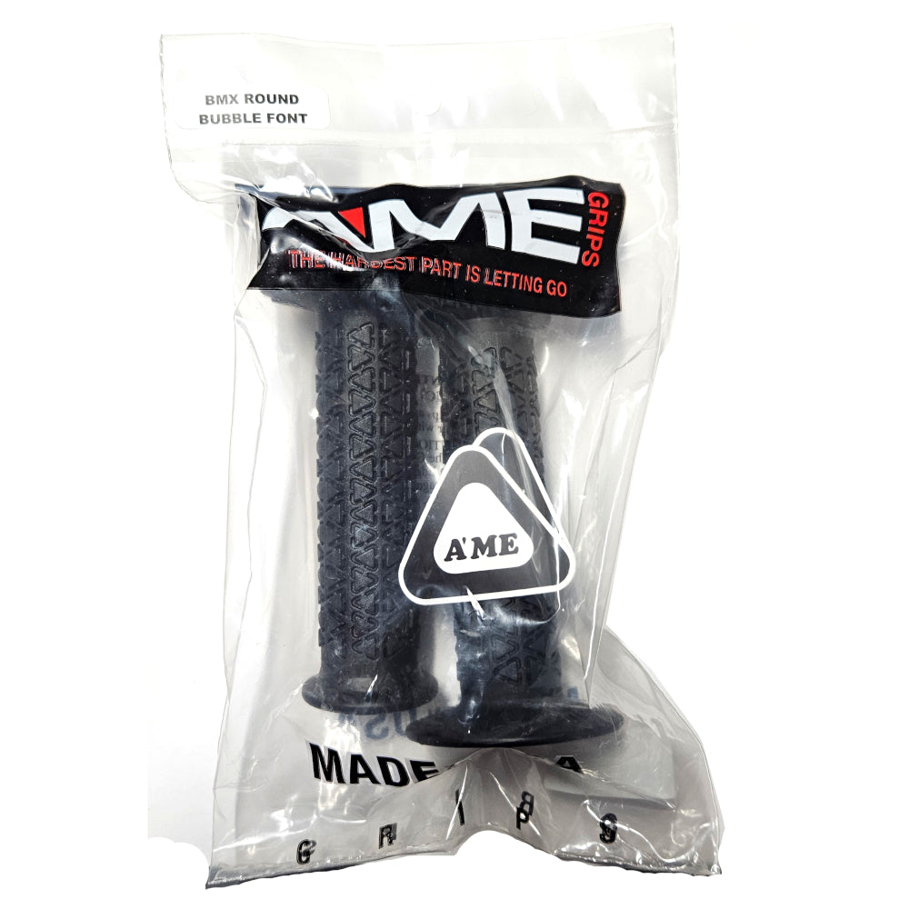 AME Rounds Bubble Font BMX Grips - Flanged - Black - USA Made