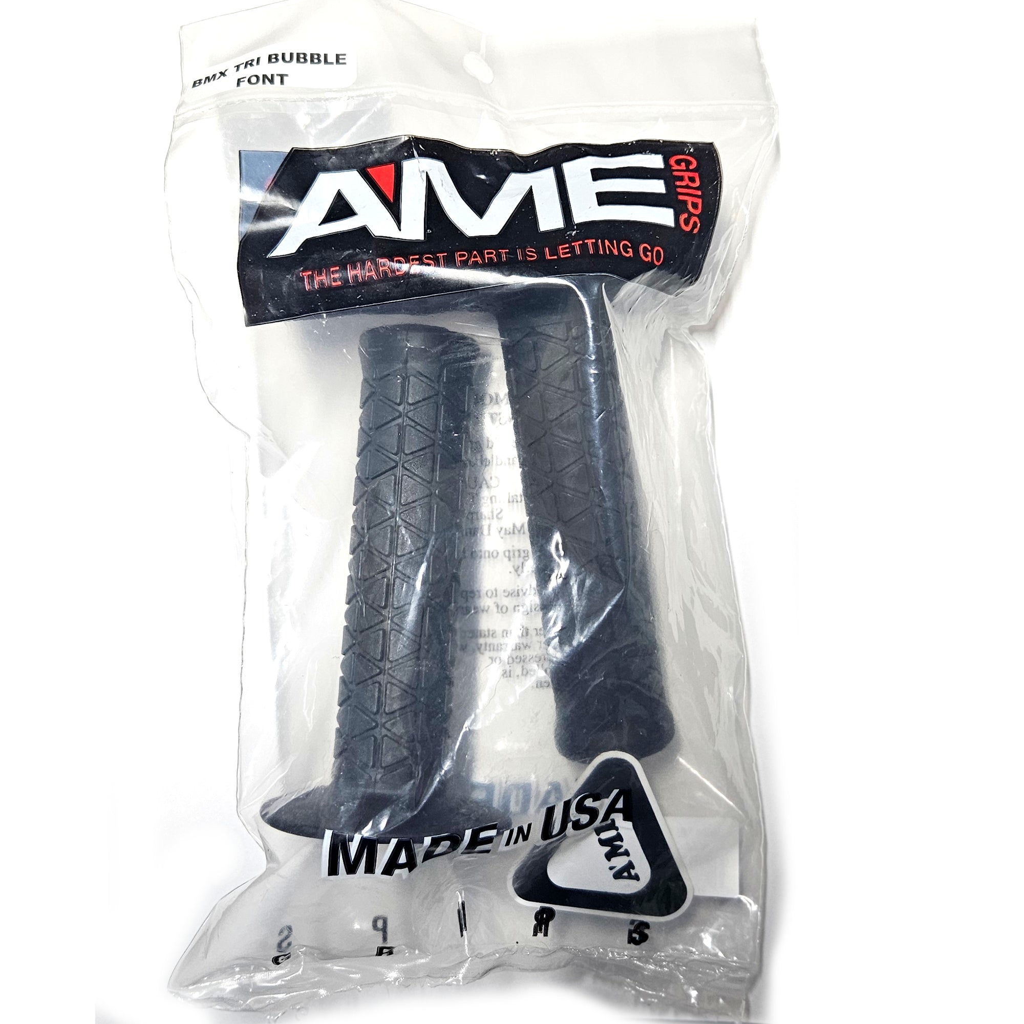 AME Tri Bubble Font BMX Grips - Flanged - Black - USA Made