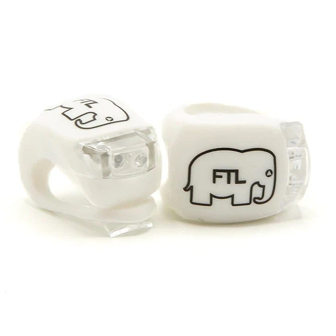 This pair of FTL Bike Lights features a Front/White and Rear/Red light, perfect for ensuring safety and avoiding tickets while riding. The water-resistant silicon body includes straps and offers 3 functions: fast blink, steady blink, and solid light options.