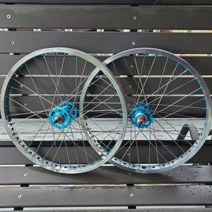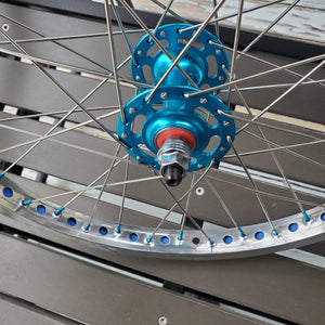 20" 7X Lite style Sealed High Flange BMX Wheelset - Pair - Polished w/ Blue