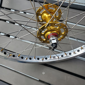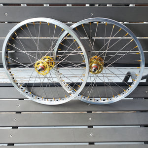 20" 7X Lite style Sealed High Flange BMX Wheelset - Pair - Polished w/ Gold