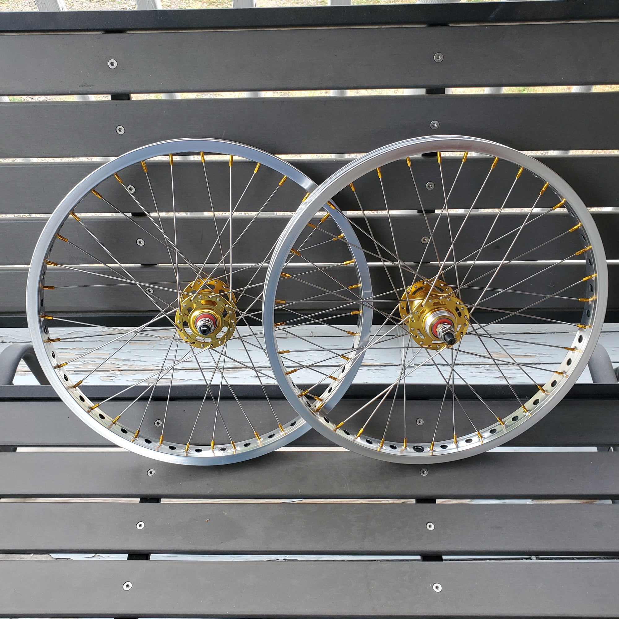 20" 7X Lite style Sealed High Flange BMX Wheelset - Pair - Silver w/ Gold