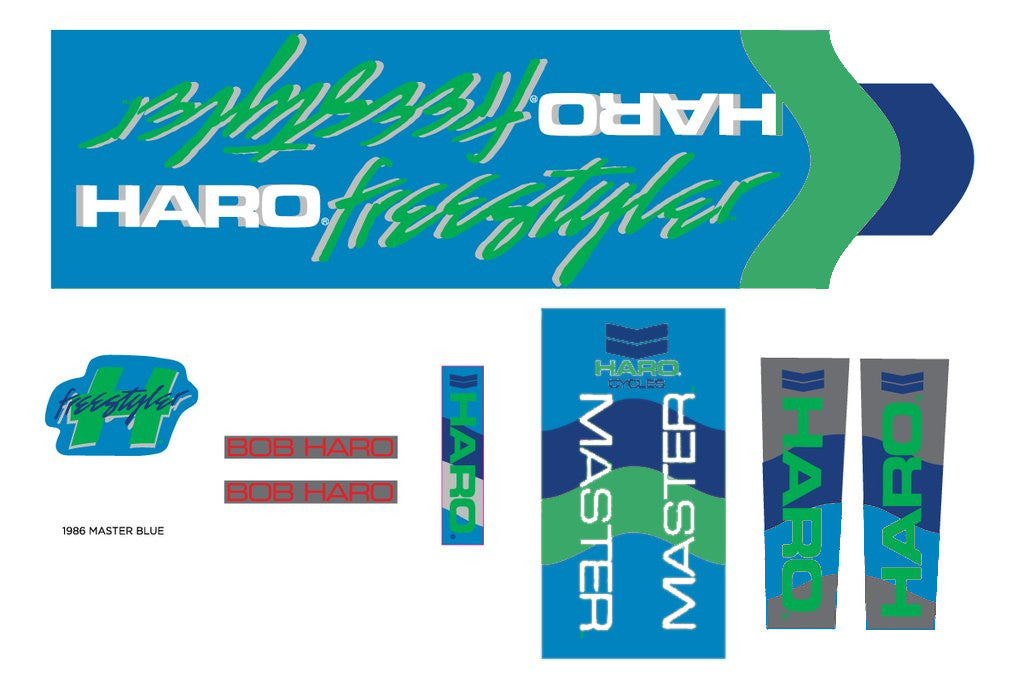 The 1986 Haro Master decals have been replicated to the original decals back in 1986. Made from the same Mylar material used back in the 80's, only difference being they stamped the rear of each set with Genuine Vintage Series, and it comes in a collectors' tube for safe shipping.