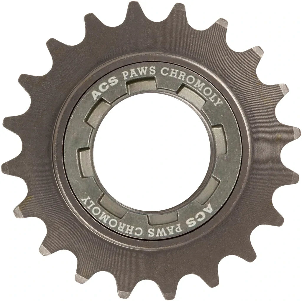 The ACS Paws Freewheel is constructed of chromoly steel. This freewheel will fit most any BMX freewheel hub and the large side of flip-flop BMX hubs. It will work with 3/32" or 1/8" chains.