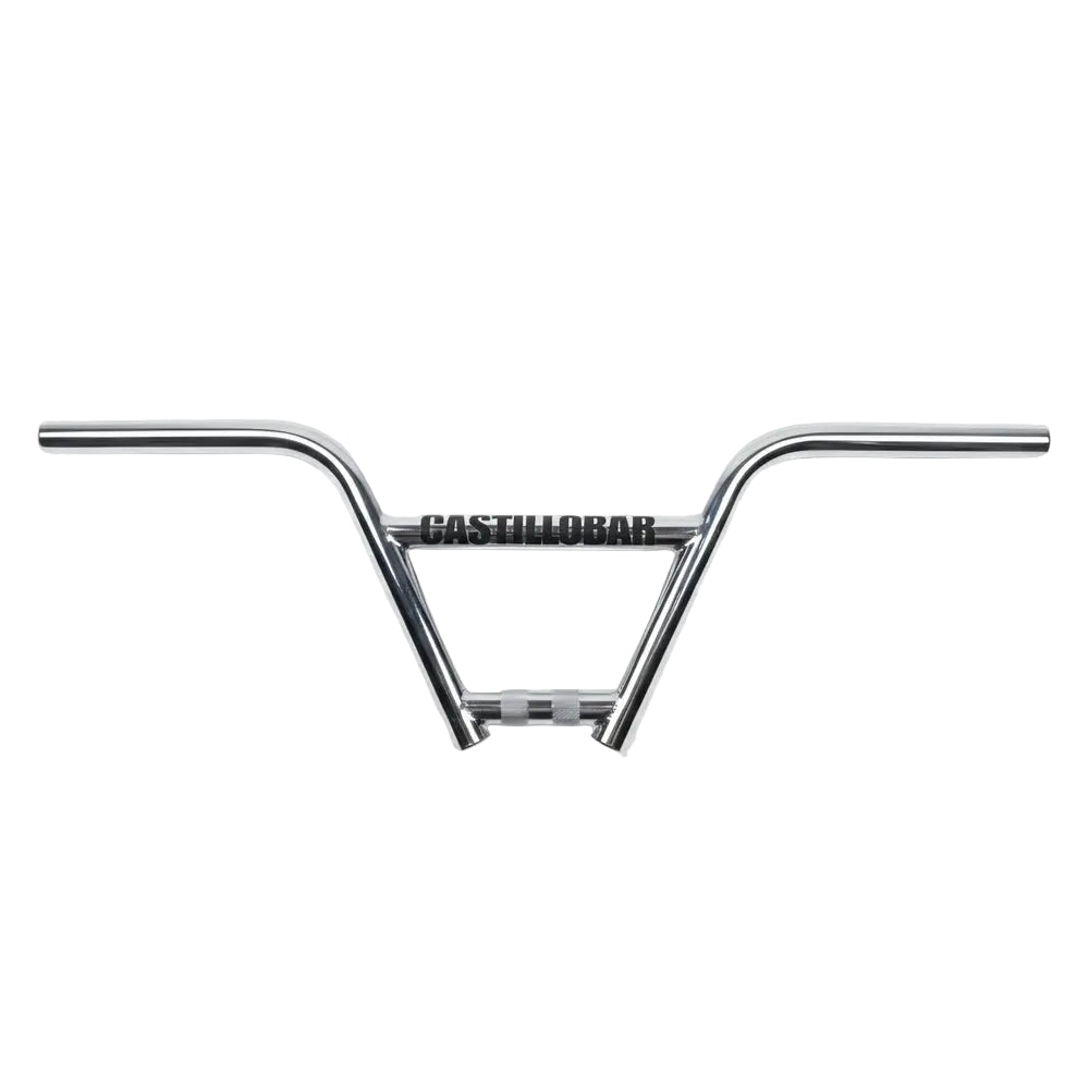 From Ride BMX UK February 1997: "They’ve been a long time coming – the new four piece bars from S&M are no fuss and simple as a 4 piece bar can be: they’re not six piece, not oversized, not swaged, just a regular 4pc design. Which we kinda like in fact. The Castillo bars have been designed by S&M’s street ruler Brian Castillo hence the name. They are fairly low, with a low crossbar, and deep-knurled stem-tube and thick walled cromoly tubing. The size is absolutely great, with a rad sweep, and good overall feeling. They also come in several colors including chrome. Castillo bars are well worth checking out.”
