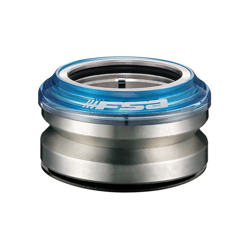The FSA Impact PC 1-1/8" sealed, threadless integrated headset is engineered for Campy spec 45/45 frames, featuring a distinctive translucent polycarbonate top cover.