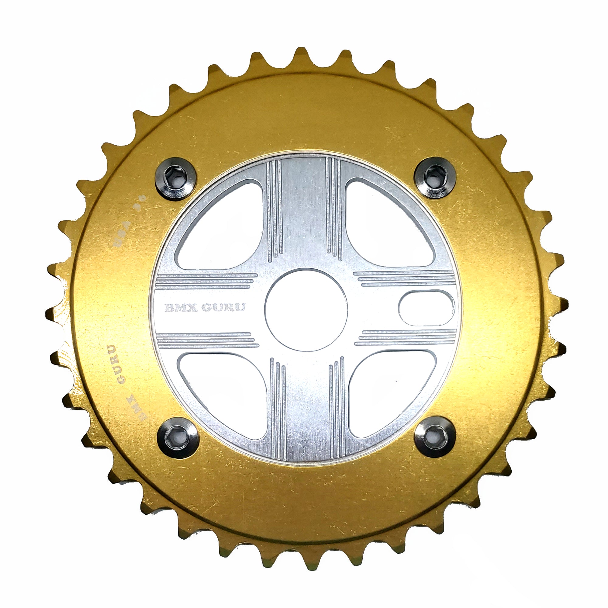 BMXGuru 36T Aluminum Spider & 4-bolt Chainring Combo - Gold over Silver - USA Made
