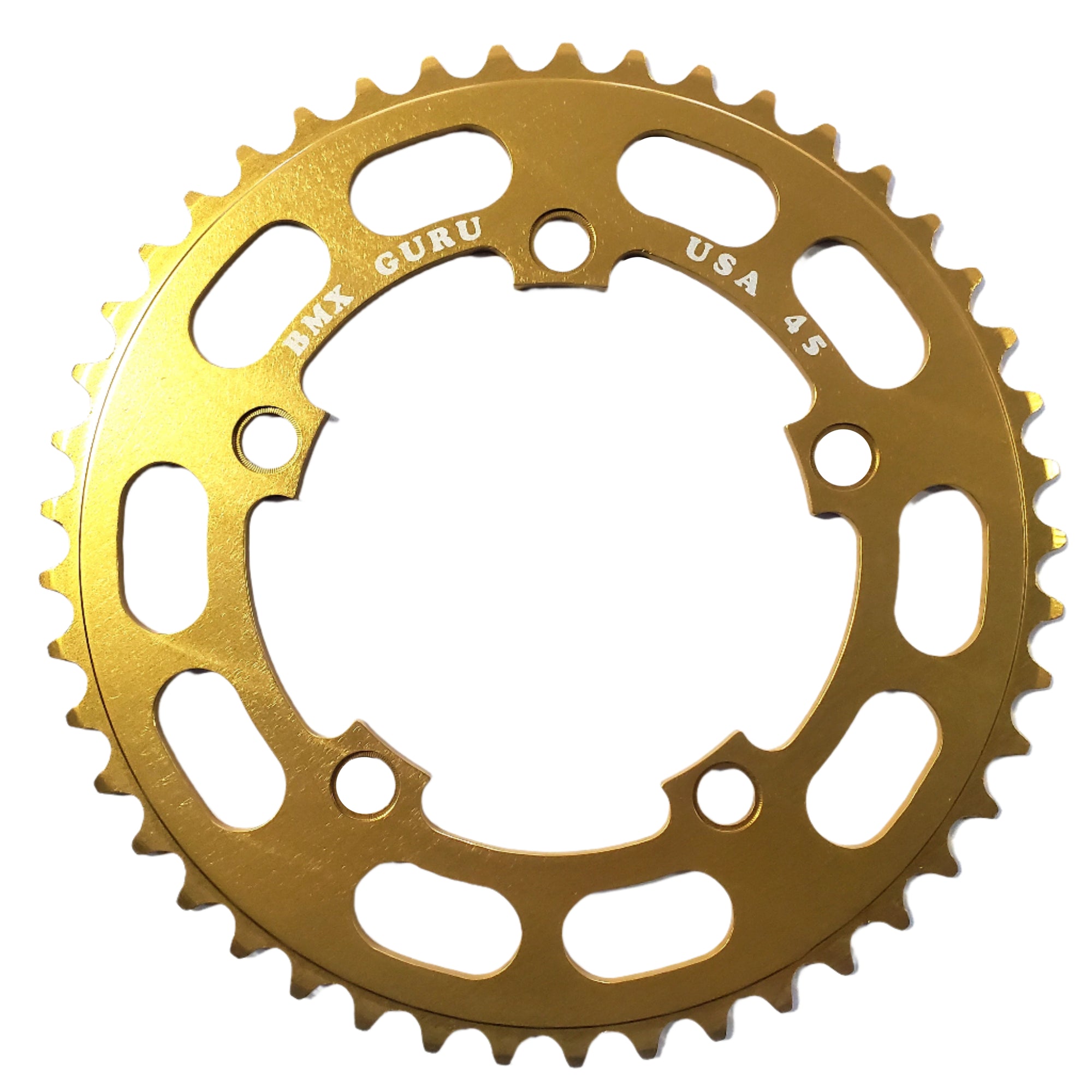 BMXGuru 45t BMX Chainring - Gold - 110mm 5-bolt - USA Made