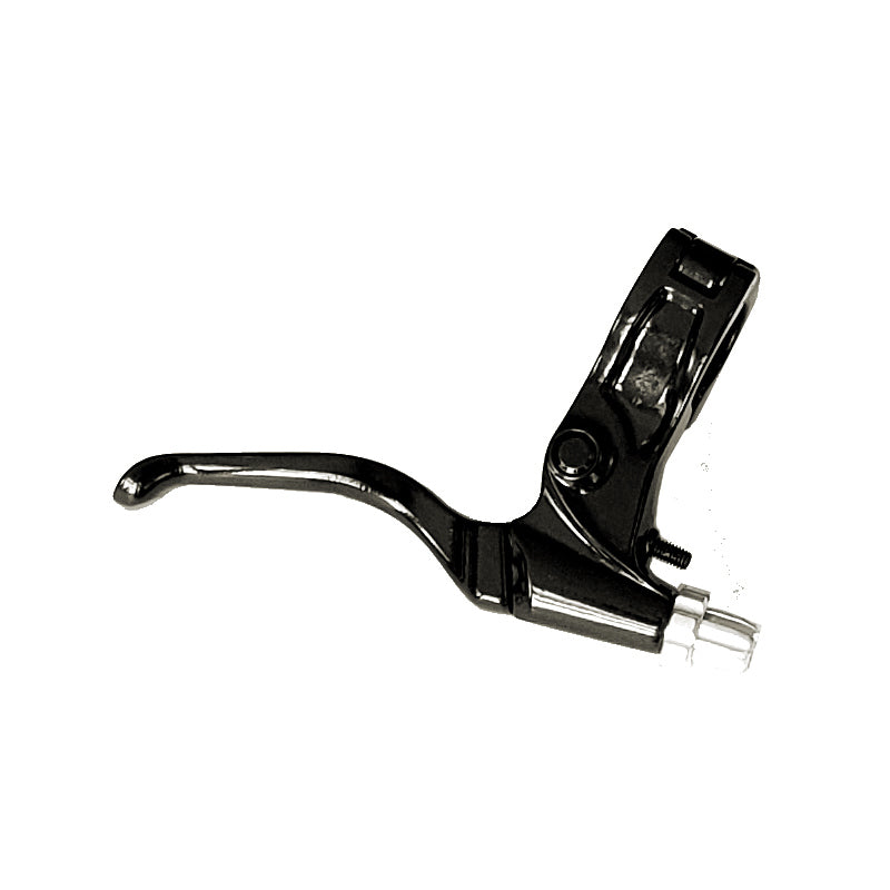 This is a forged aluminum brake lever. It features a 2 finger lever design for comfort and a hinged clamp for easy installation and removal. This lever will work V-brakes or mechanichal disc brakes.