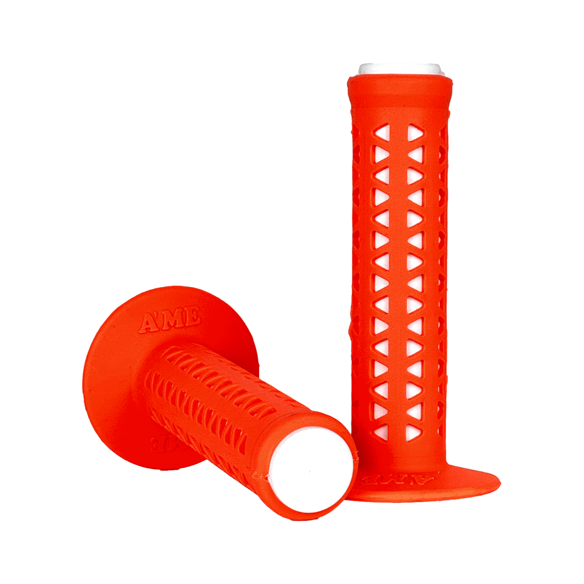 AME Unitron re-issue retro BMX grips - Flanged - Fluorescent Orange over White - Made in the USA