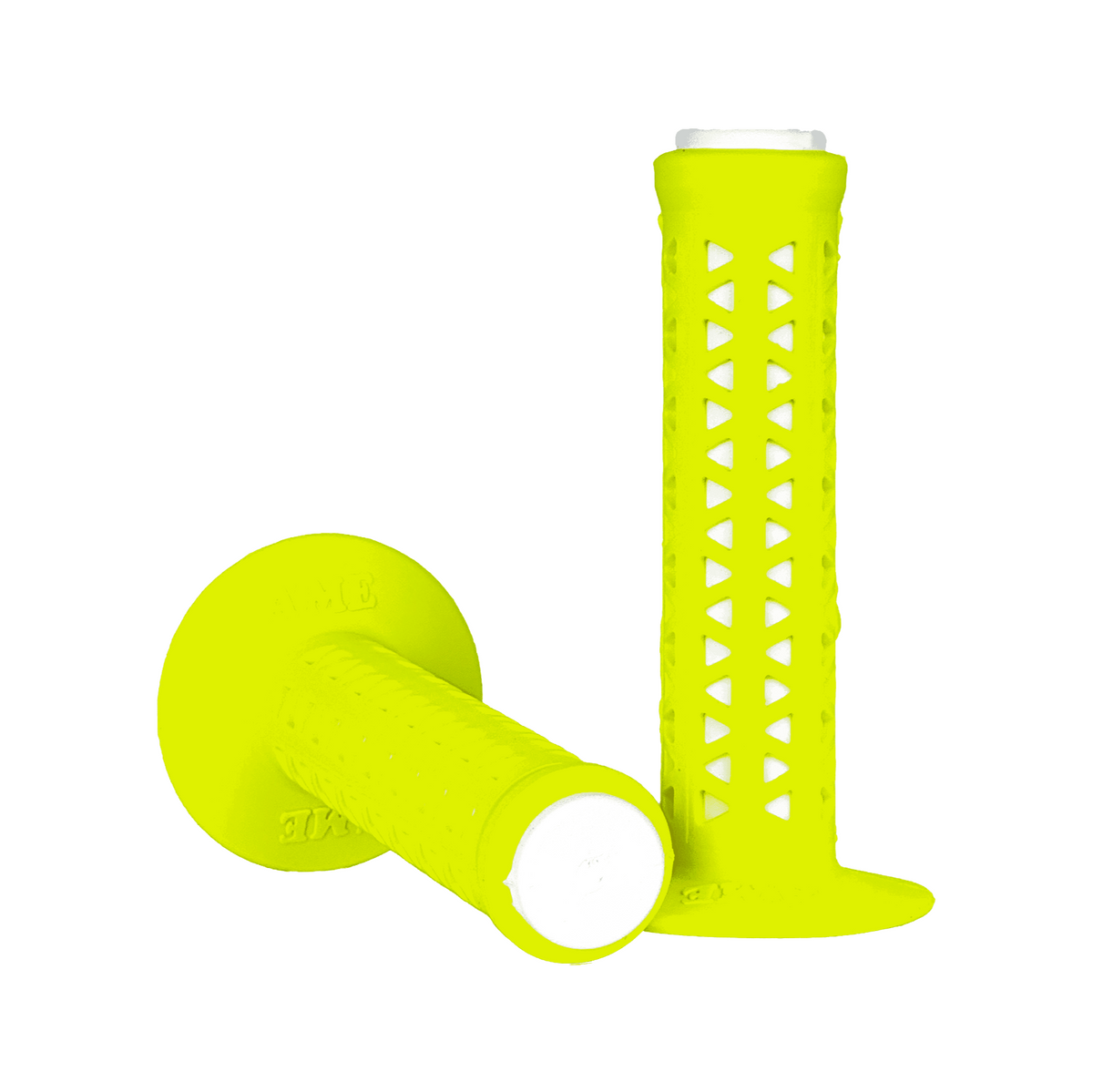 AME Unitron re-issue retro BMX grips - Flanged - Fluorescent Yellow over White - Made in the USA