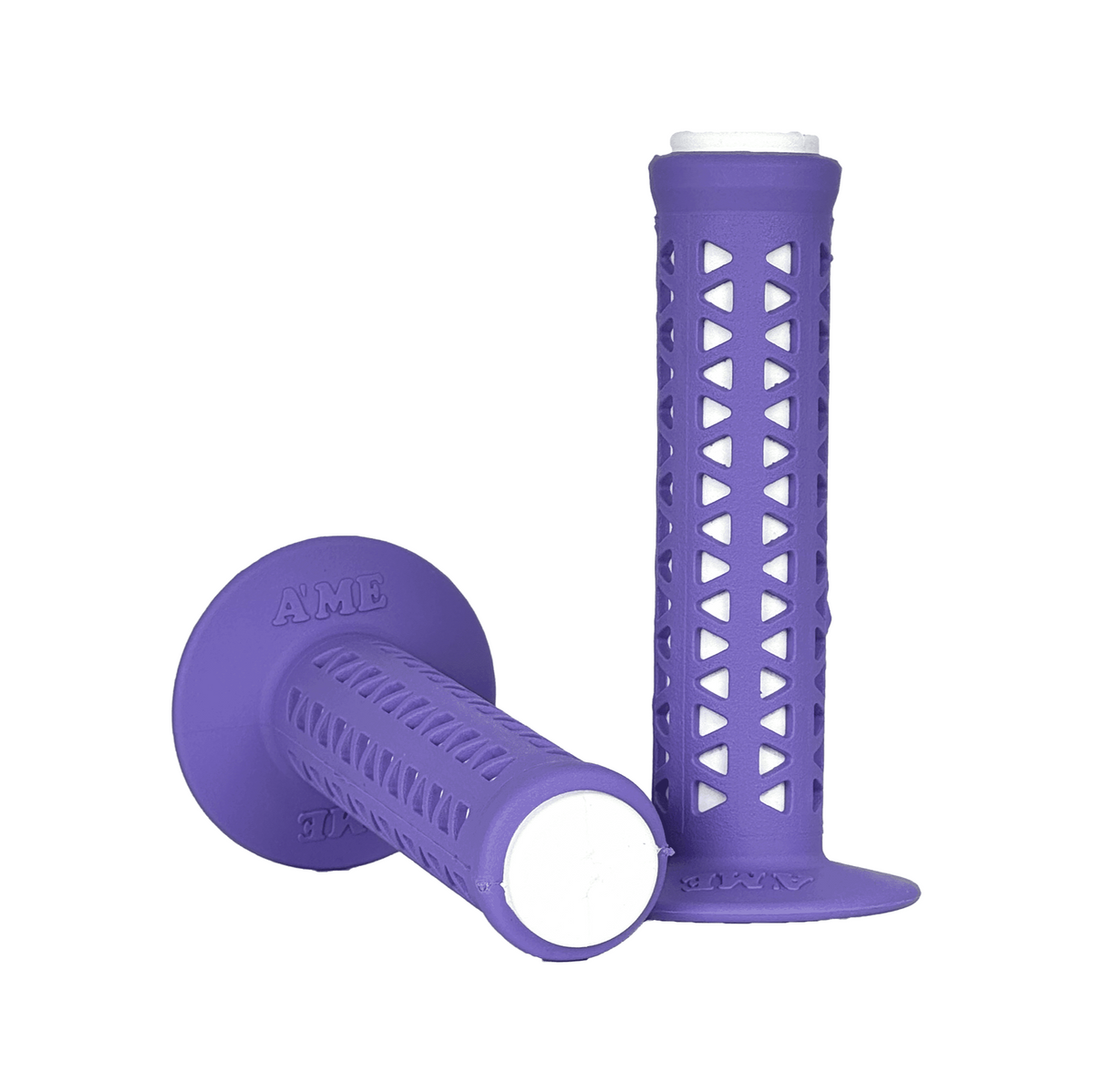 AME Unitron re-issue retro BMX grips - Flanged - Purple over White - Made in the USA