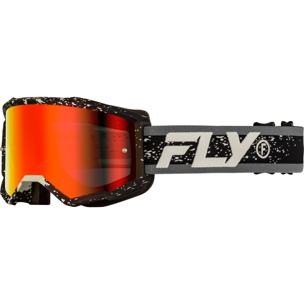 Fly Zone Adult BMX / MX Goggles - Black/Red/Cream w/ Silver Mirror/Smoke Lens