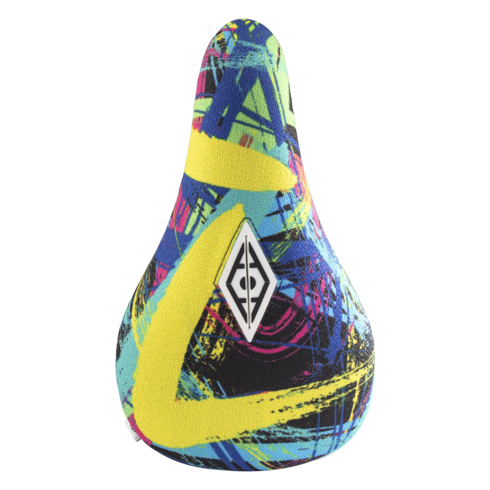 Rev up your BMX game with a wicked mix of colors straight from the 80s - neon pinks, electric blues, and sunny yellows galore. The seat's got the strength of a Hulk Hogan smackdown, but with a soft side for a comfy ride. This seat is constructed with a canvas cover and includes an Alienation bolt patch and hollow bolt.