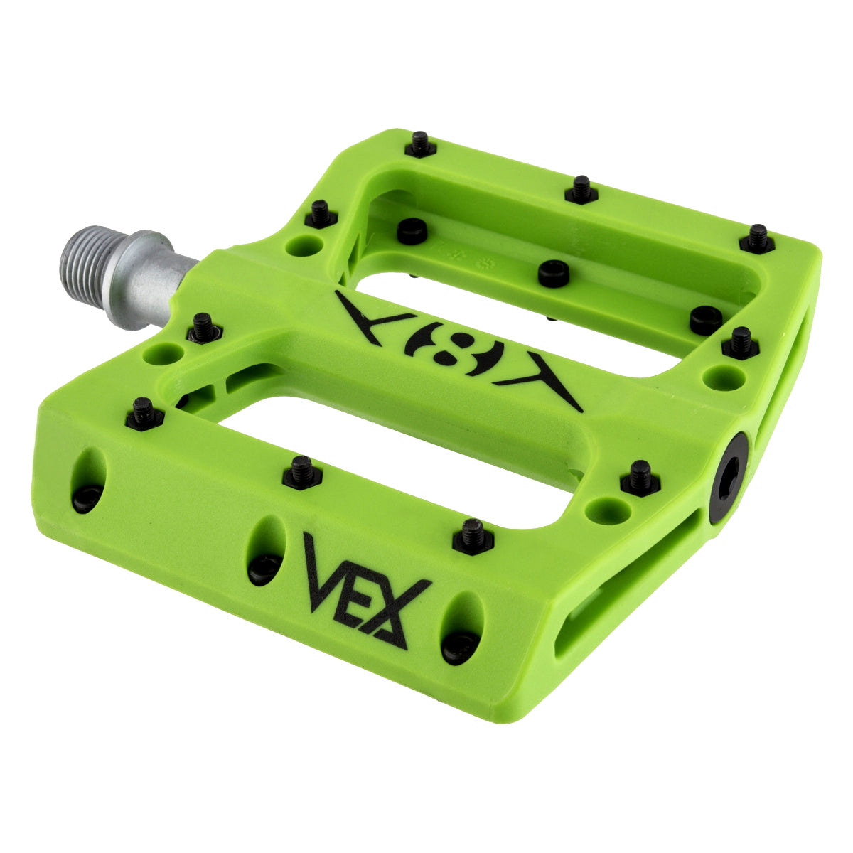 Origin8 Vex Sealed Platform Pedals deliver professional-grade performance with a thermoplastic body engineered for impact resistance. The sealed bearing system paired with LSL sleeve bushings ensures smooth, maintenance-free operation. Built on a 9/16" CNC chromoly spindle, these pedals feature a concave platform for secure foot placement and removable pins that allow customization to match your riding style and preference. Sold in pairs.