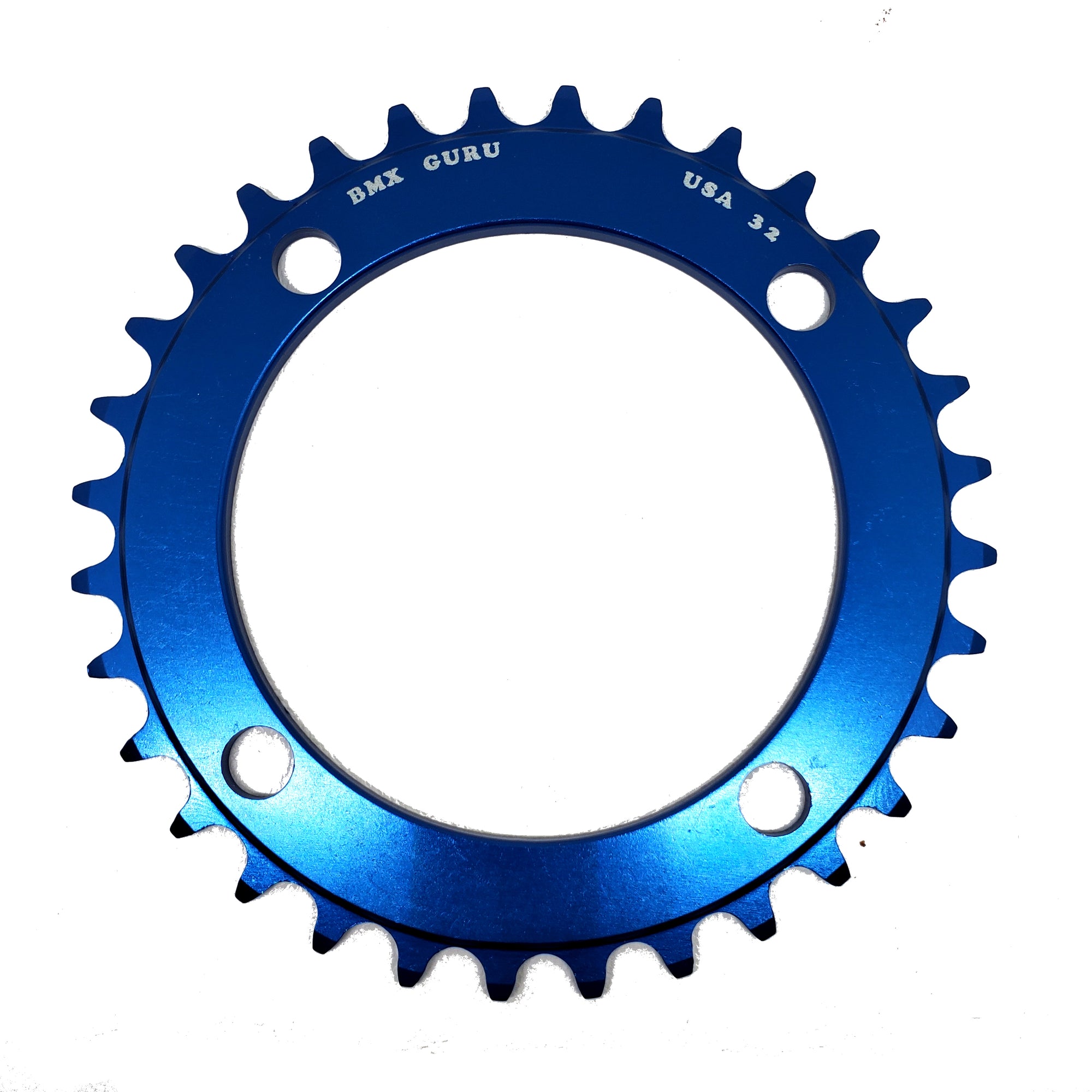 BMXGuru 32t BMX Chainring - Blue - 104mm 4-bolt - USA Made