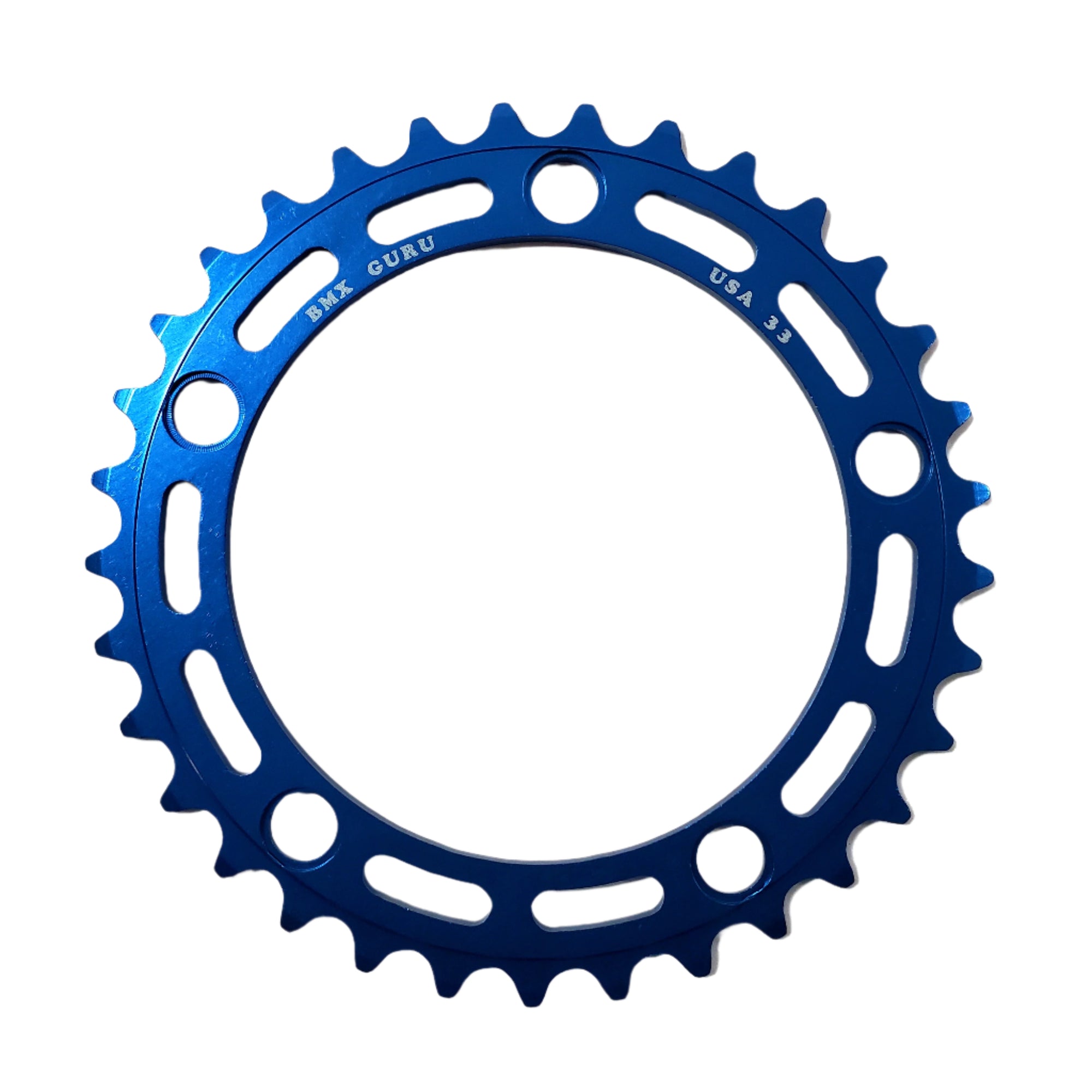 BMXGuru 33t BMX Chainring - Blue - 110mm 5-bolt - USA Made
