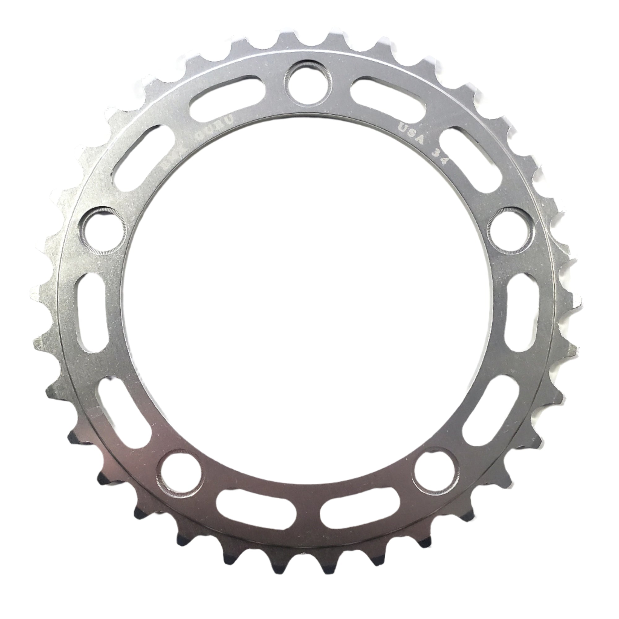 BMXGuru 34t BMX Chainring - Silver - 110mm 5-bolt - USA Made