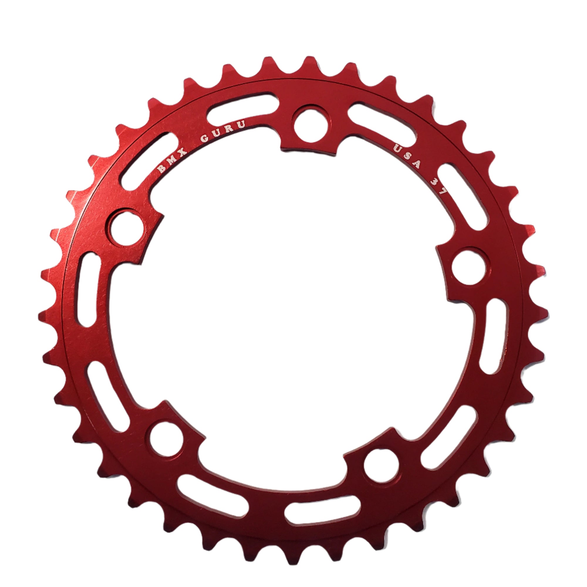 BMXGuru 37t BMX Chainring - Red - 110mm 5-bolt - USA Made