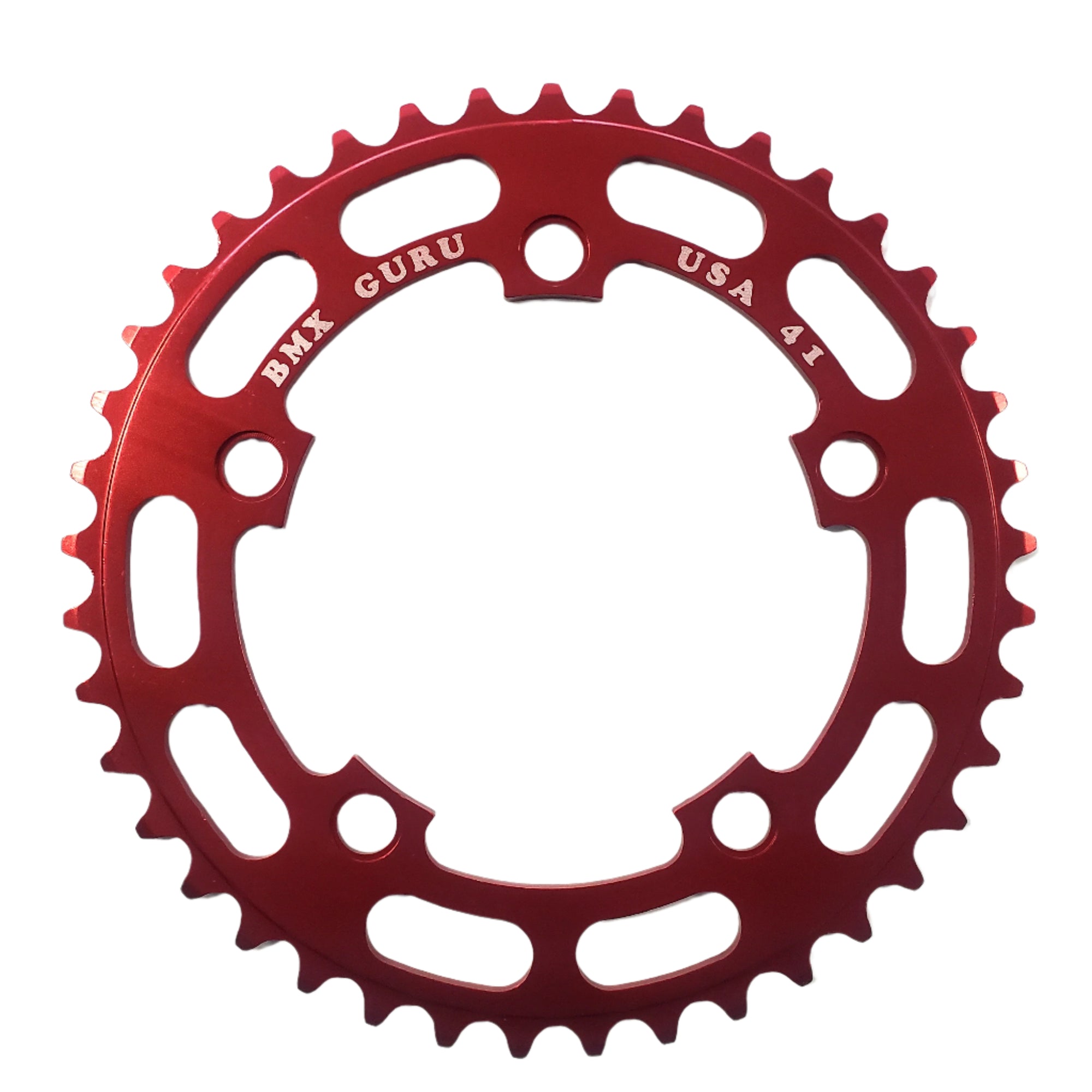 BMXGuru 41t BMX Chainring - Red - 110mm 5-bolt - USA Made