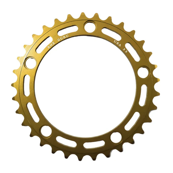 BMXGuru 33t BMX Chainring - Gold - 110mm 5-bolt - USA Made