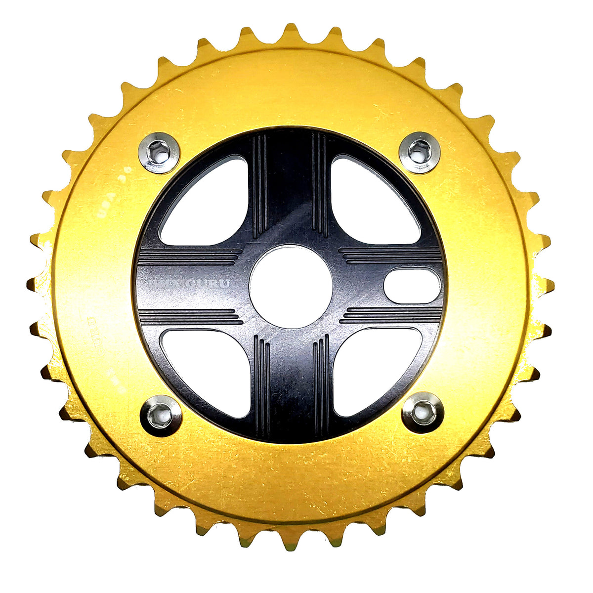 BMXGuru 34T Aluminum Spider & 4-bolt Chainring Combo - Gold over Gold - USA Made