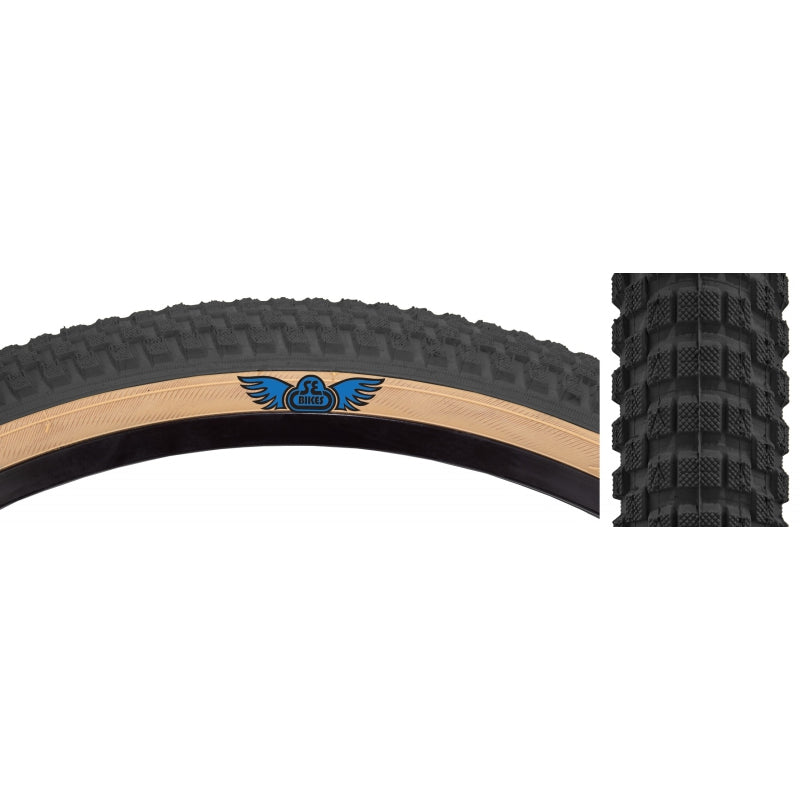 A collaboration between Vee Tire and SE Bikes, the SE Racing Cub tire offer a classic BMX style street tread with a bit of SE Bikes`s vintage styling. This is the version with standard rubber compound.