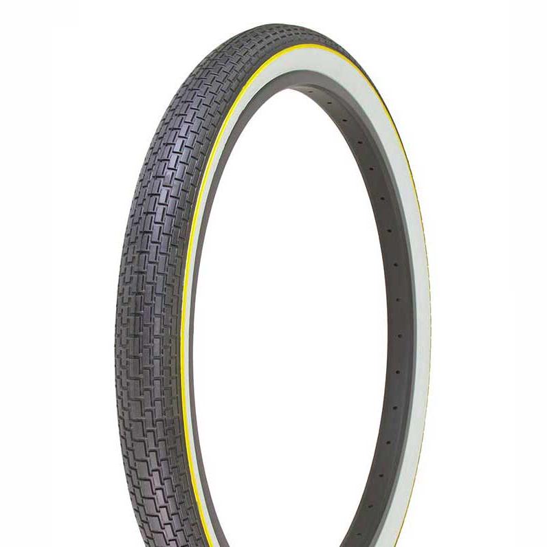 26x2.125 Duro Westwind Brick Tread Tire - Black w/ Whitewall & Yellow Stripe
