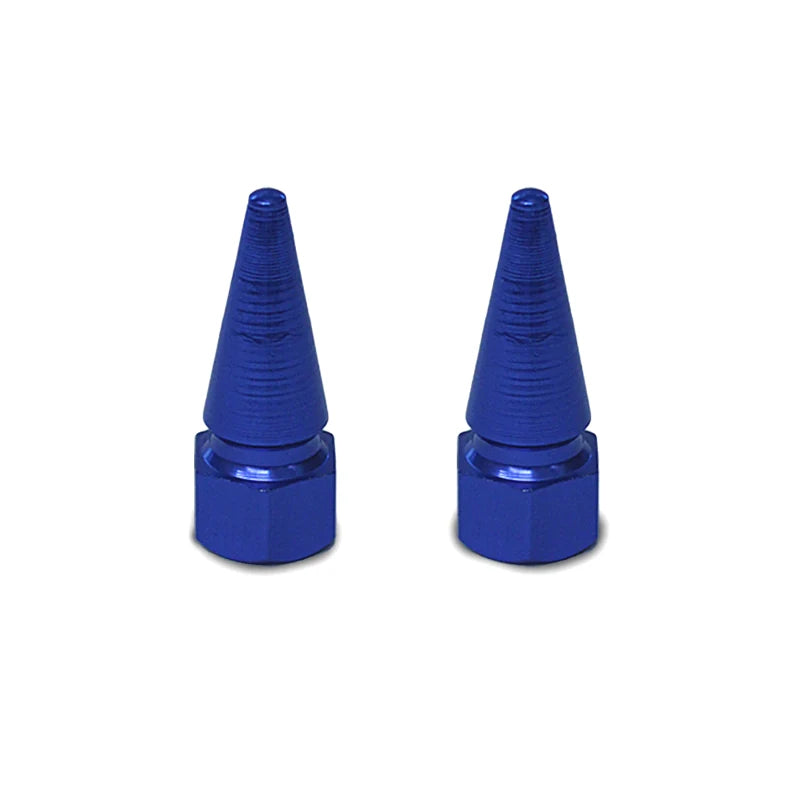 Schrader Valve Caps - 1" Aluminum Spike - Pair - Blue