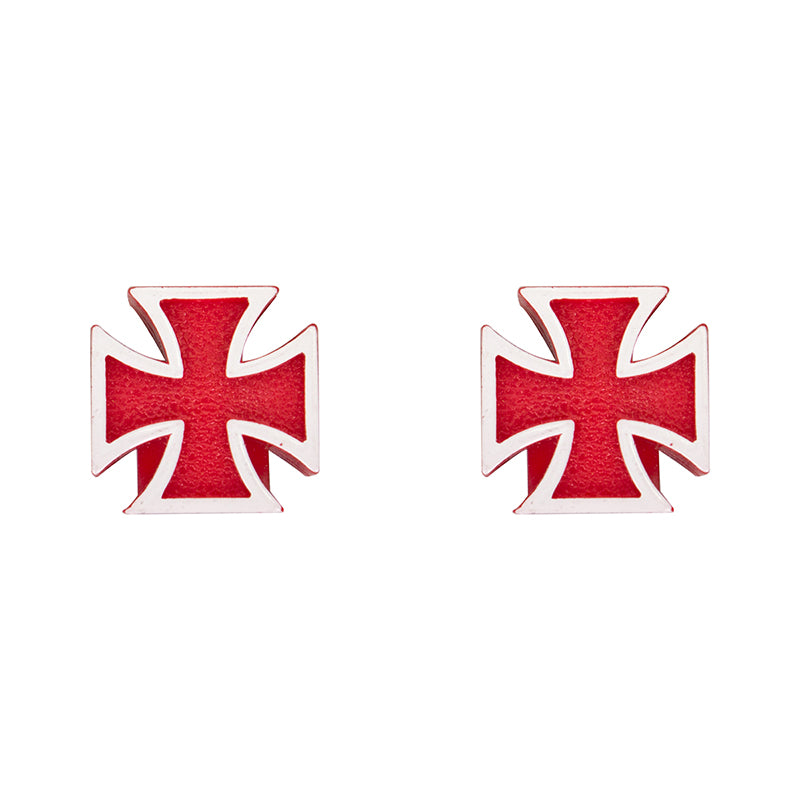 This is one pair (2 caps) of Trik Topz Iron Cross Valve Caps for schrader valves.