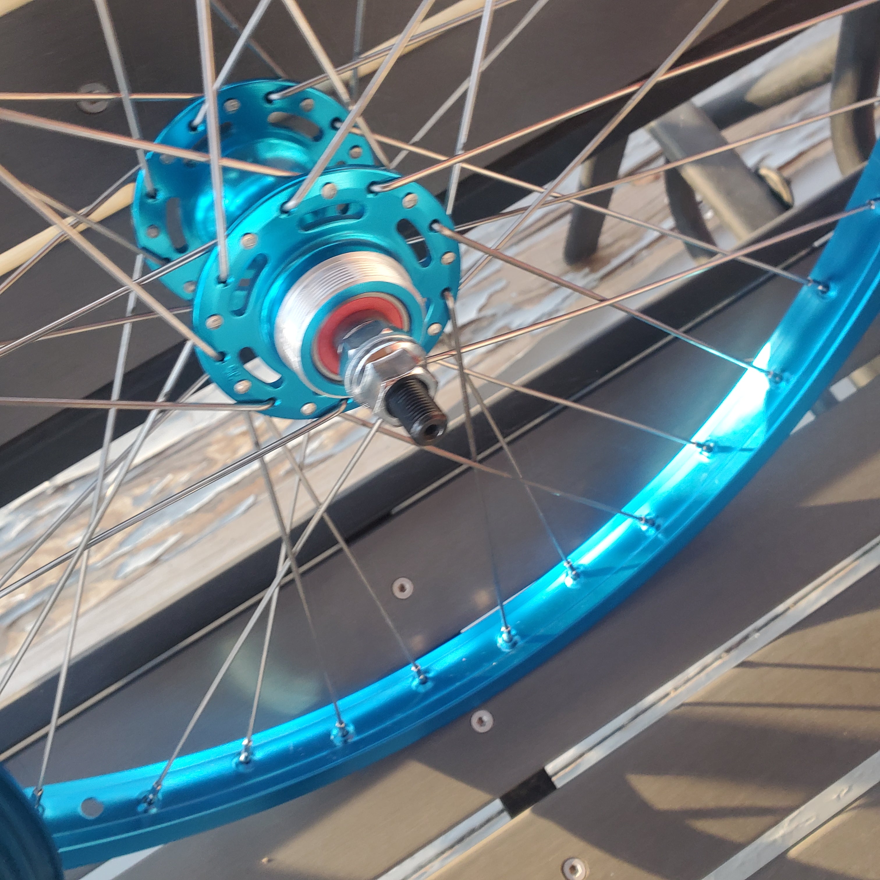 24" 7X style Sealed High Flange BMX Wheels Freewheel - Pair - Blue Anodized - *BLEMISHED*