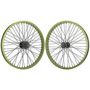 20" Double Wall 48-spoke BMX Wheelset - 9t RHD - Sealed - Pair - Dank Green