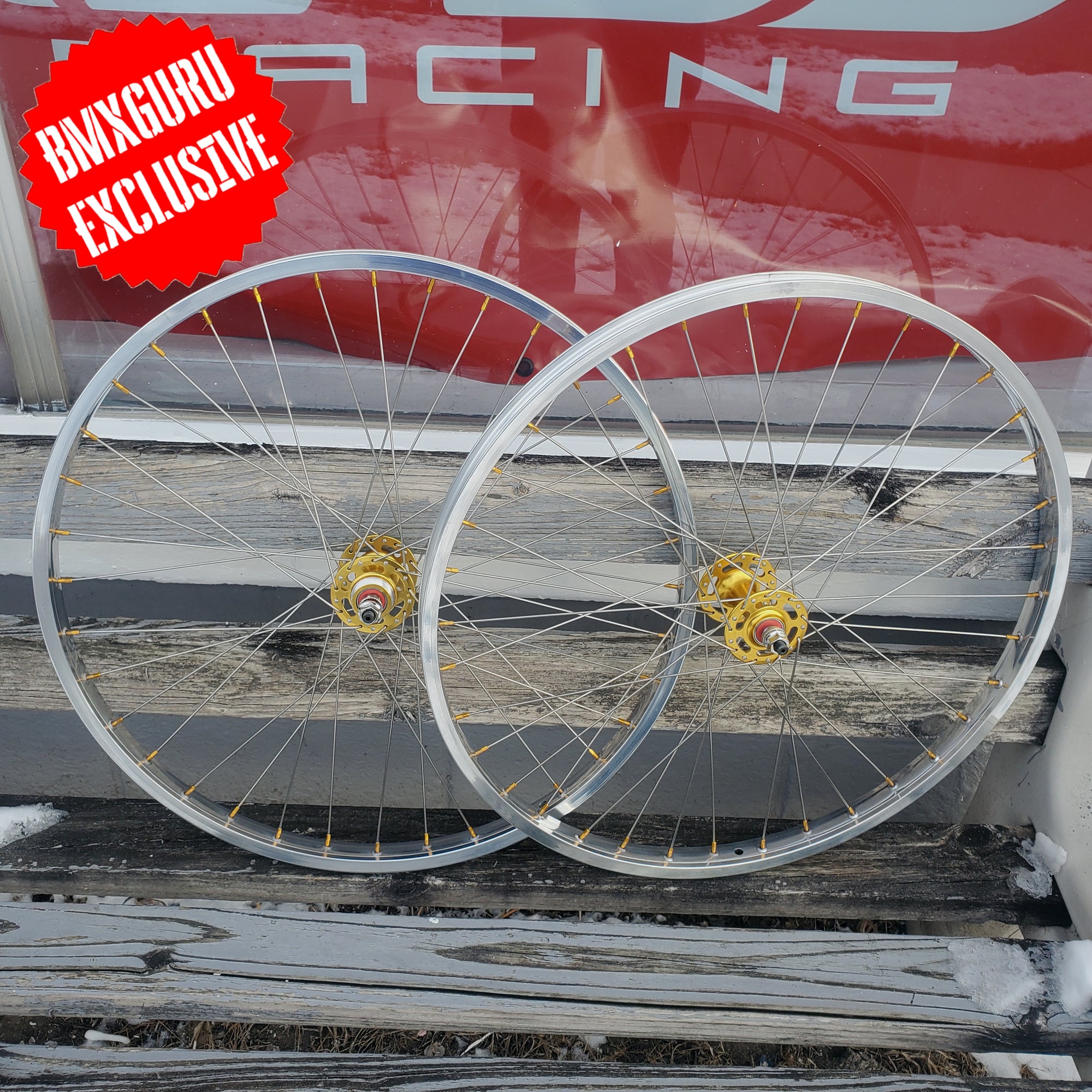 26" 7X style Sealed Road Flange BMX Wheelset - Pair - Polished / Gold
