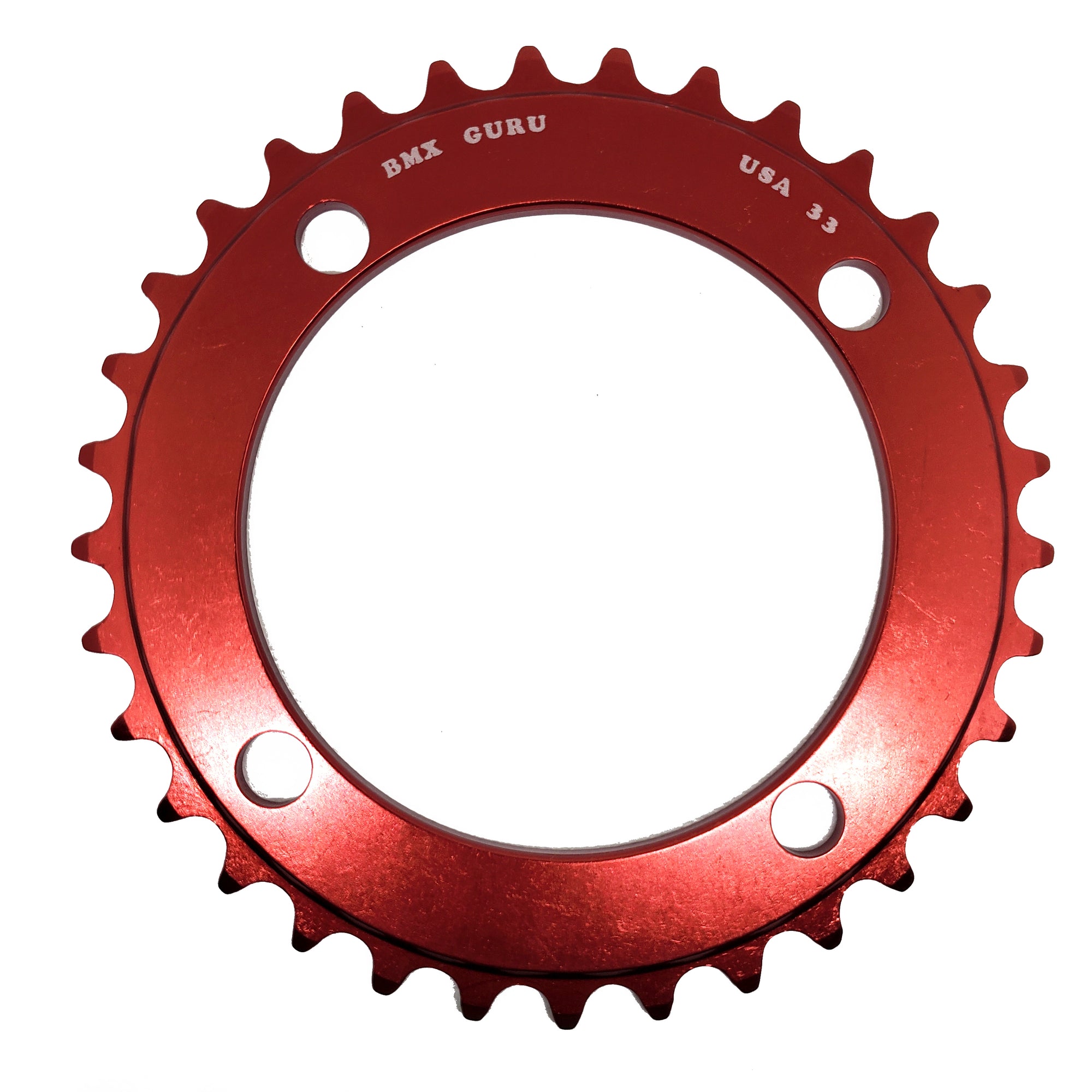 BMXGuru 33t BMX Chainring - Red - 104mm 4-bolt - USA Made
