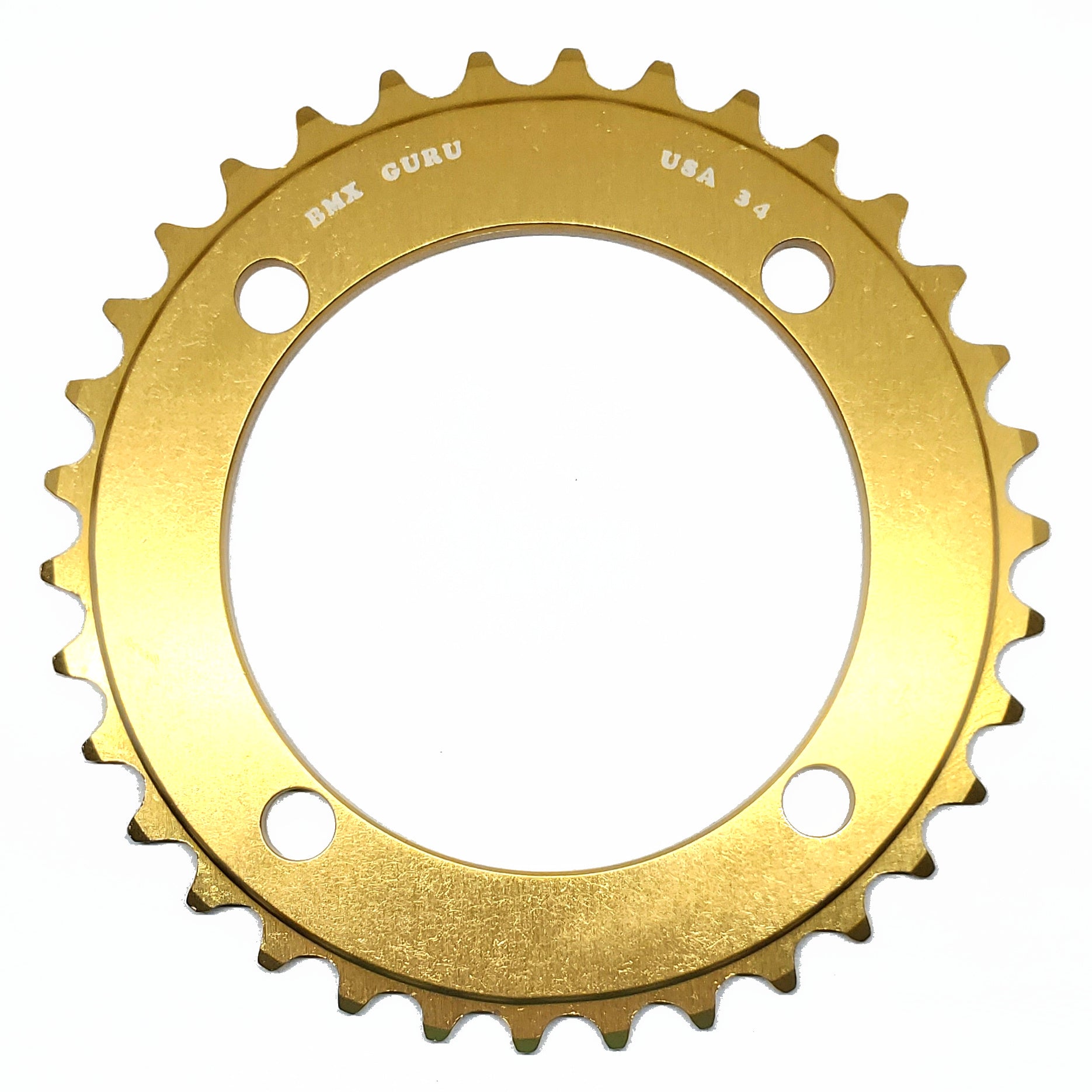 BMXGuru 34t BMX Chainring - Gold - 104mm 4-bolt - USA Made