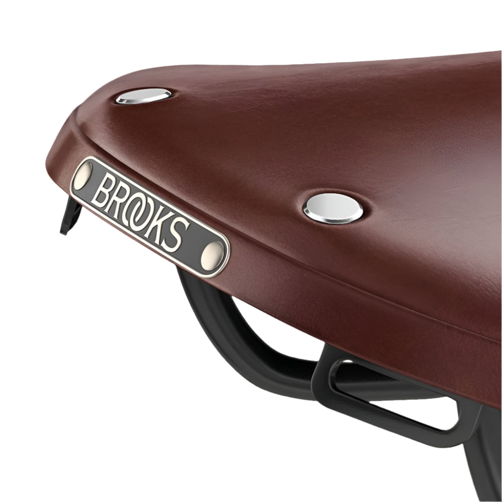 The B17 is the Brooks flagship model. The best-selling model for over 100 years, the B17 is the ideal bicycle saddle for commuting, gravel, road and touring use. A supremely comfortable saddle thanks to its flexible, hammock-like, performance that moves with every pedal stroke, the B17 is a bike seat designed for the 60° angled riding position. Each seat is handmade in England from beautiful and durable 100% vegetable-tanned leather that will mold and shape individually to each rider; it is finished with premium tubular steel rivets and steel rail with black powder coating undercarriage.