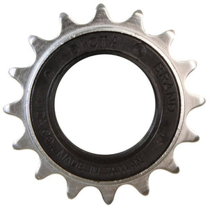 This freewheel is made by Dicta and has a 4-prong release for removal. It will fit most any BMX freewheel hub and the large side of flip-flop hubs. This will work with 3/32" or 1/8" chains.