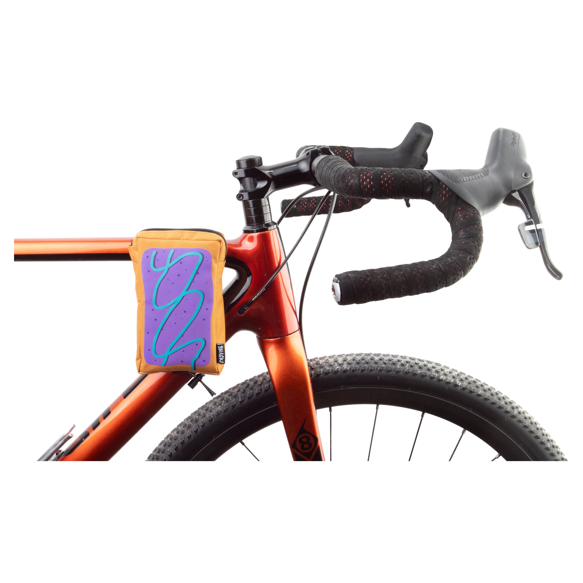 What better place to keep your favorite mid-ride toaster pastry than in a bag of the same design. Dual straps on the back allow it to be attached vertically on the top tube, handlebar or stem to keep important items within easy reach, while a built-in zipper garage prevents the zipper from working itself open unintentionally. This pouch is constructed of 600D polyester with a supportive foam lining.