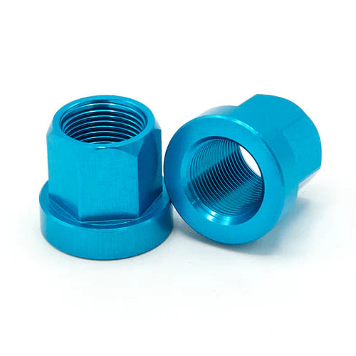 Theory BMX aluminum axle nuts are flanged and designed for use with 14mm axles. A 17mm wrench is required to install (not included). Sold as a pair.